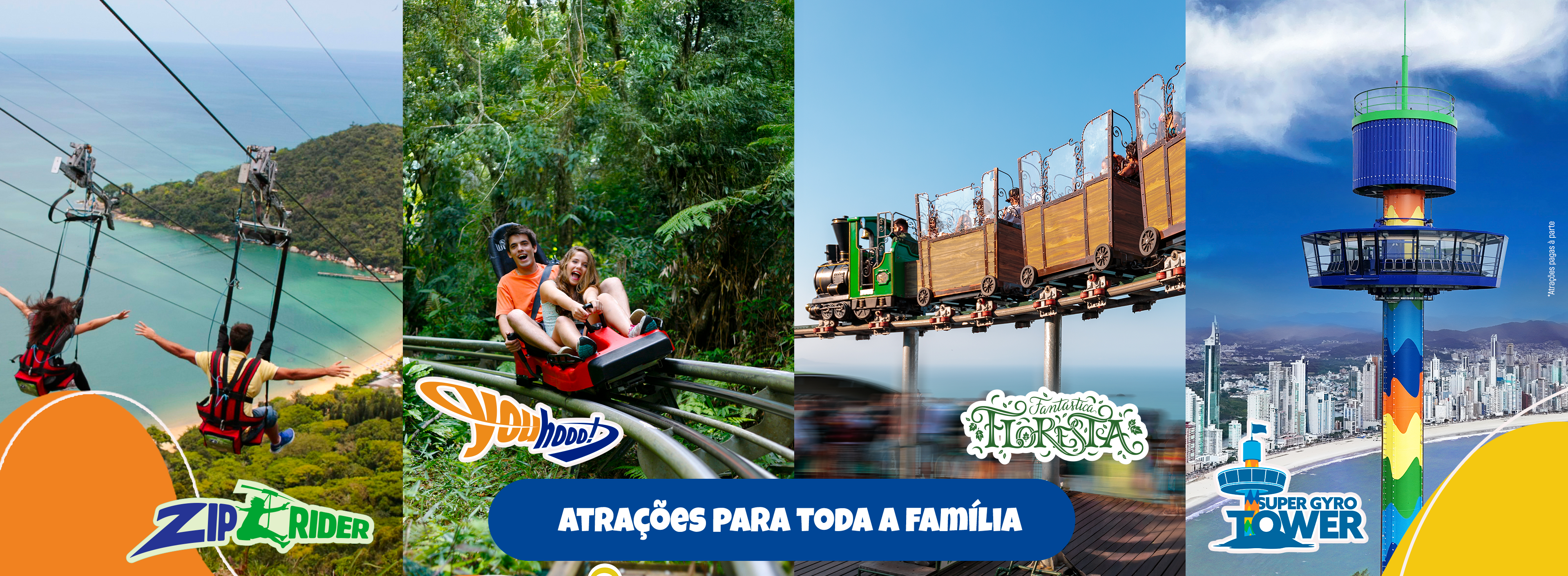 O Parque Unipraias é um complexo turístico que interliga 3 estações através de 43 modernos bondinhos aéreos com capacidade para até 6 pessoas. É o único parque que liga 2 praias! O seu passeio pode iniciar na estação Barra Sul ou na estação Laranjeiras. As duas sobem para a estação Mata Atlântica, que conta com várias atrações como: o Youhooo! a Fantástica Floresta a ZipRider e a Super Gyro Tower. Você também pode aproveitar a praia sem preocupação alguma, tendo a opção de ir e voltar com o mesmo bilhete durante o tempo de funcionamento do parque. Divirta-se!